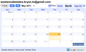 To check the availability of the Park for an organized event, go to the Park Reservation page, which now has an interactive Google calendar displayed to show reservation days and times.